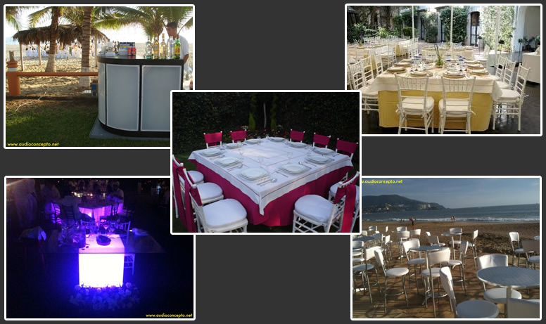 - Mesa de Cristal con Iluminación de colores y sillas tifanny transparentes